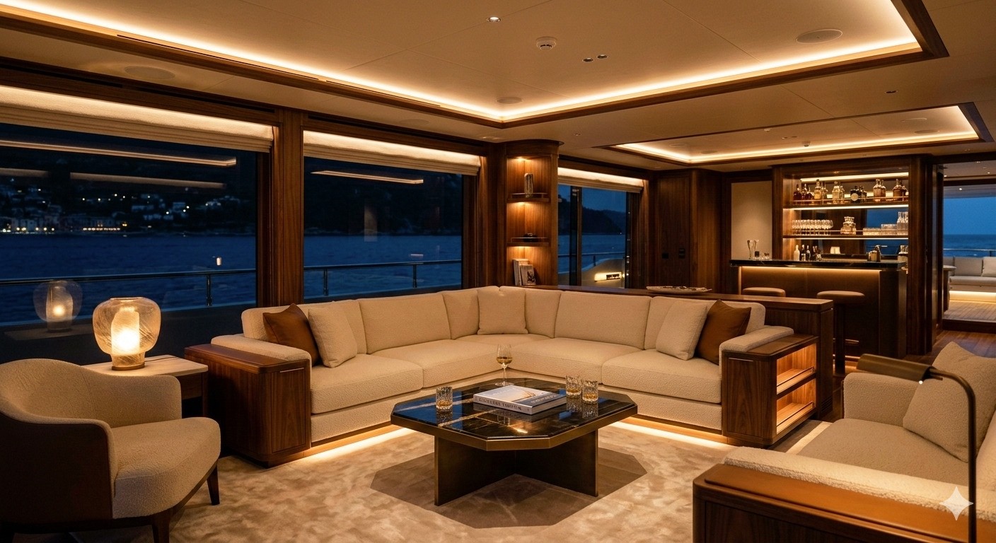 To create a virtual skylight LED video ceiling for the Sky Lounge, a collaborative effort between experts in yacht-building, interior design, technology, and the installation was essential. Here is a simplified breakdown of the implementation process: